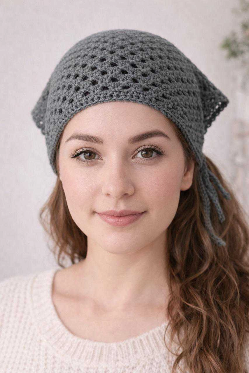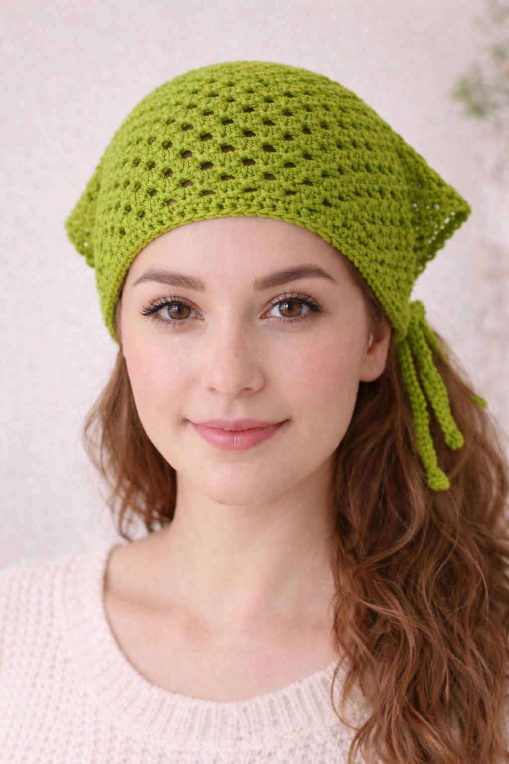 Add a touch of handmade charm to your look with this beautifully crocheted bandana headscarf. Crafted with a breathable open-stitch pattern, it offers comfort while keeping hair neatly in place. The adjustable tie-back design ensures a secure and flattering fit for different head sizes and hairstyles. Ideal for casual outings, beach days, or adding a boho accent to your outfit, this headscarf blends style, comfort, and versatility.