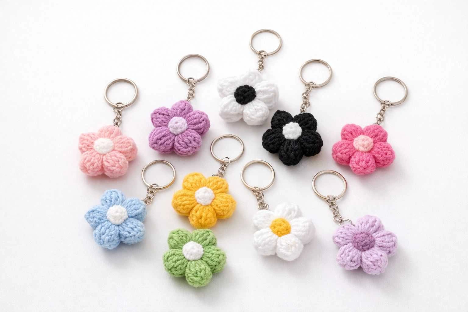 Add a cheerful handmade touch to your everyday essentials with this adorable crochet flower keychain. Carefully handcrafted using soft, high-quality yarn, each flower features beautifully textured petals and a vibrant, eye-catching design. Finished with a sturdy metal keyring, it’s perfect for daily use.