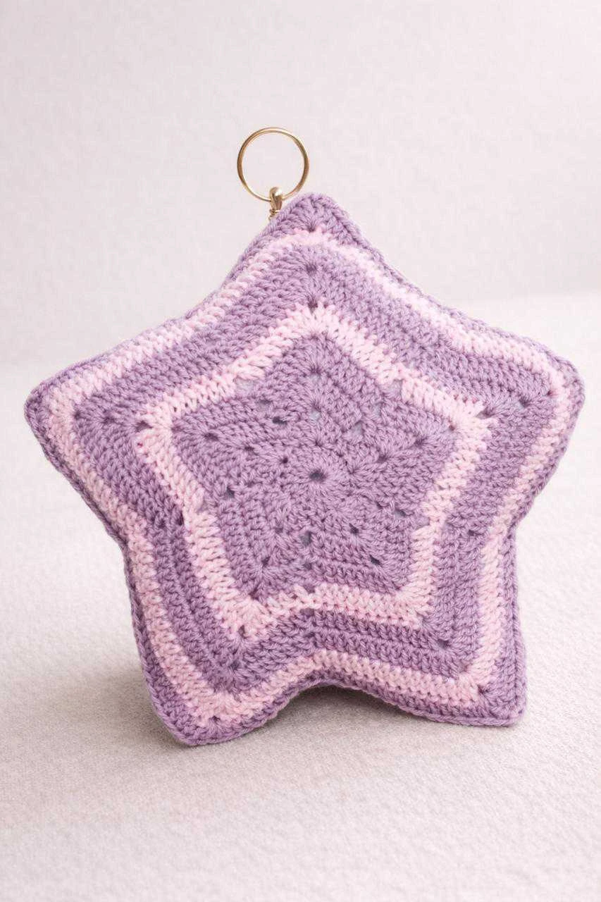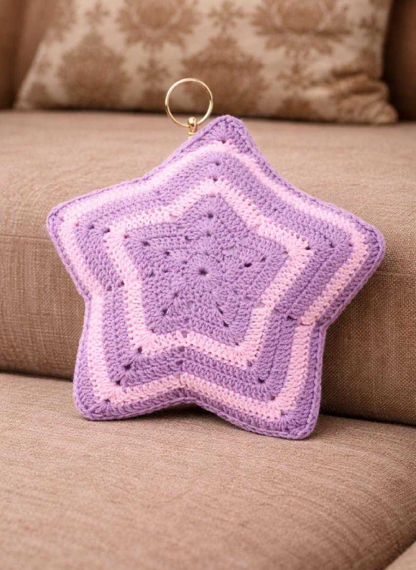 Add a soft, whimsical touch to your space with this beautifully handcrafted star-shaped crochet cushion. Designed in soothing lavender and blush tones, it features a textured crochet pattern that brings warmth and charm to any room. Perfect for sofas, beds, or kids’ spaces, this cushion combines cozy comfort with playful elegance, making it a delightful accent for modern and cozy interiors alike.